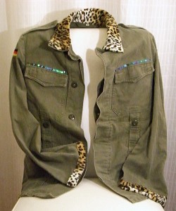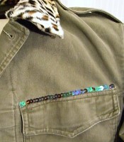 über den Brusttaschen: Pailletten in blau, türkis, grün
